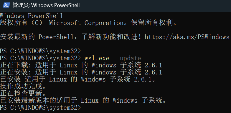 PS C:\WINDOWS\system32> wsl --update |