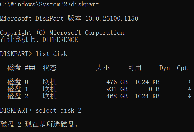 u盘之前拿去刷启动盘了,之后直接在文件资源管理器里面格式化不了,有写保护,只好用diskpart来处理
