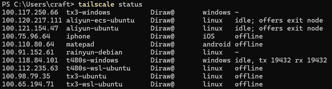 tailscale status |